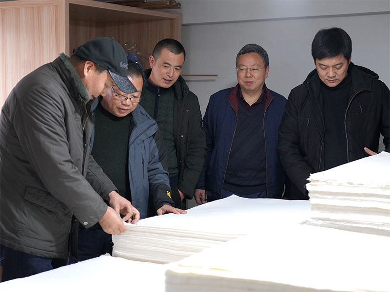 2021年1月26日,休寧縣政協(xié)主席儲曉華來公司調(diào)研徽州楮皮紙制作技藝傳承和發(fā)展情況。
