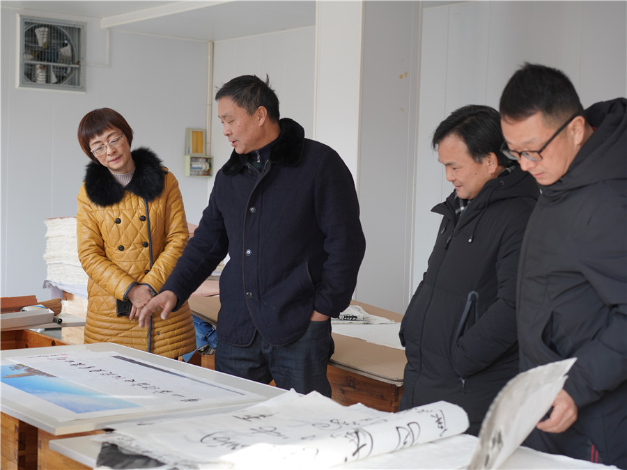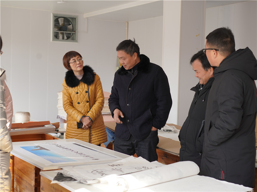 1月11日由市文旅局副局長王迎春帶隊(duì)的,黃山市非物質(zhì)文化遺產(chǎn)傳習(xí)基地驗(yàn)收組到我司黃山市凝霜文化發(fā)展有限公司進(jìn)行調(diào)研工作。