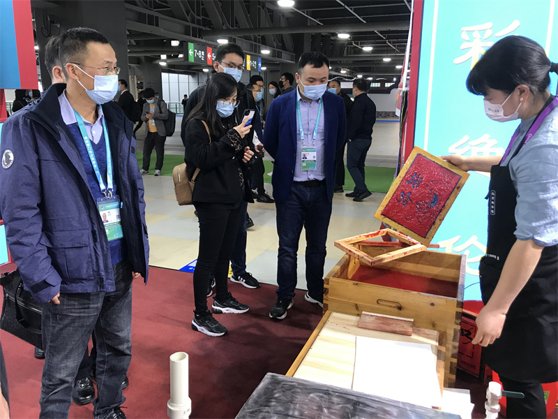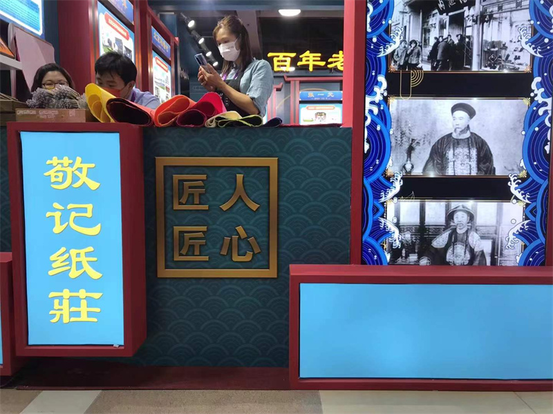人文交流區(qū)E2區(qū)熱鬧非凡,現場了解傳統(tǒng)手工紙制作技藝。